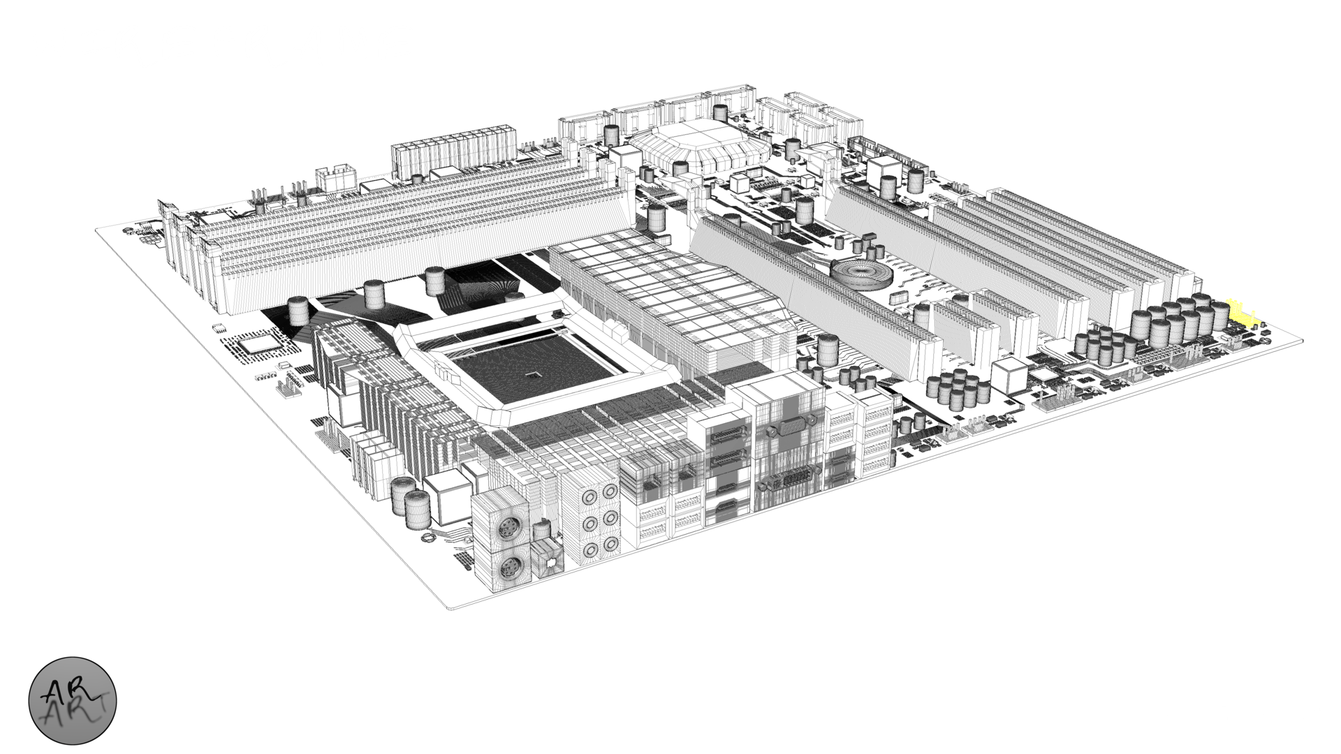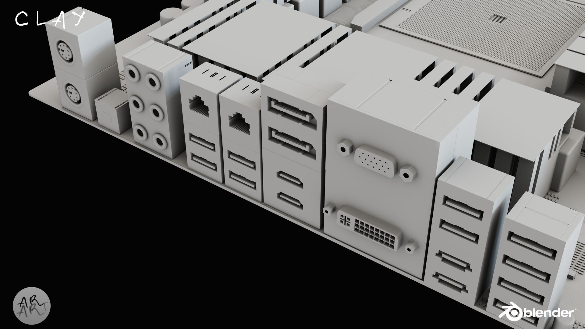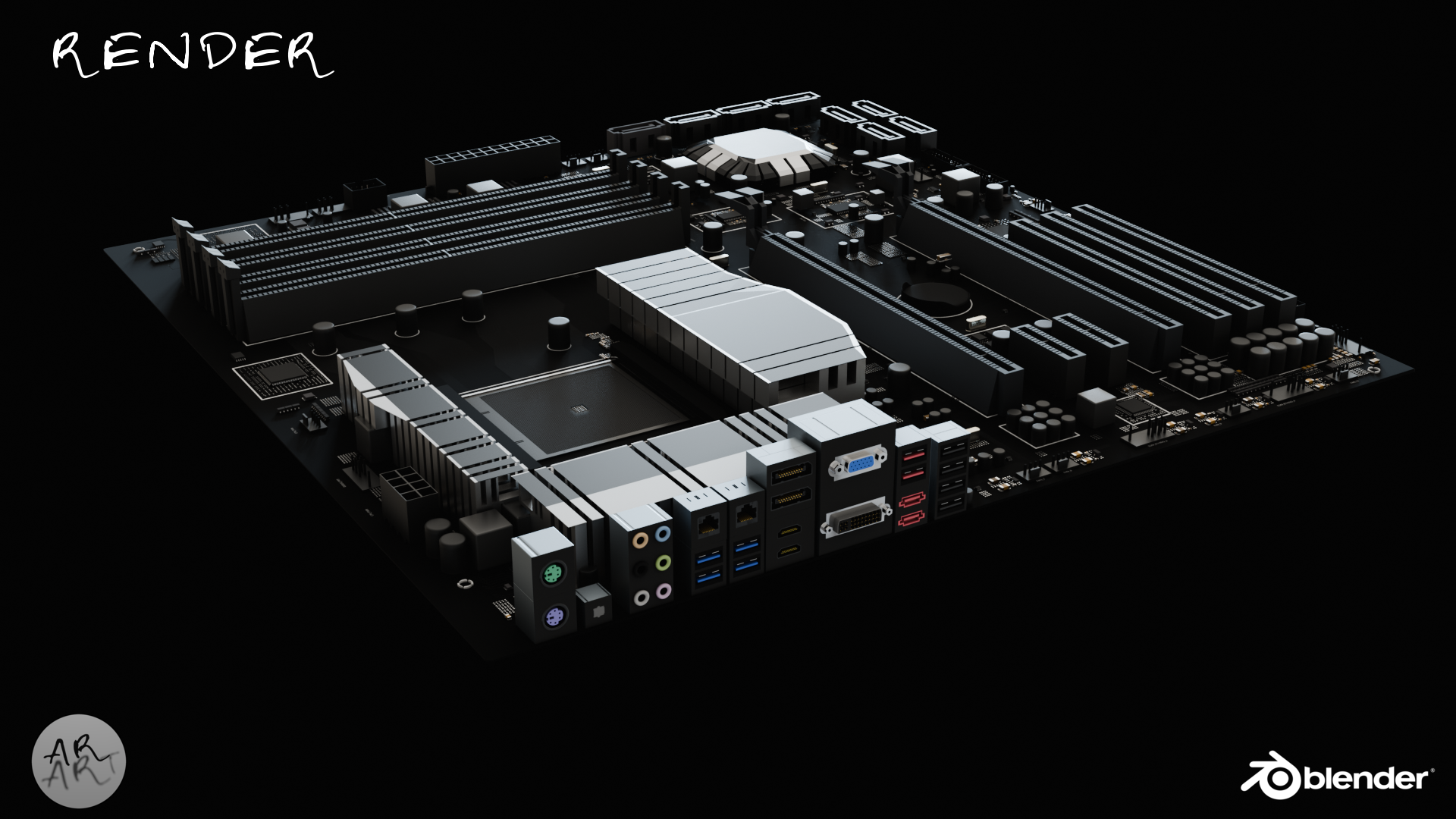 I tried to create a motherboard with as much detail as possible mixing in elements from older motherboards and modern ones as well